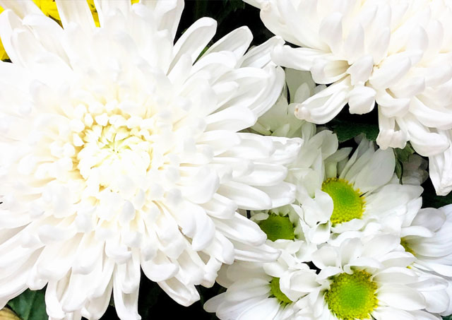 葬儀屋さんのゆいまーるが府中市で家族葬の式場に飾られた白百合の祭壇装花に寄り添う風景