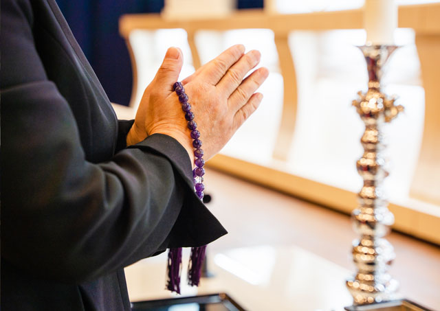 葬儀屋さんのゆいまーるが府中市で遺族と数珠を持ち祈る様子